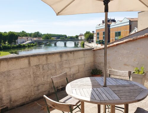 In the heart of the town of Jarnac and next to the cellars of the Courvoisier Cognac house, the mill is in an exceptional location. Perched on the banks of the River Charente, you’ll enjoy immediate proximity to a large wooded park offering lovely walks along the water’s edge, pedestrianised streets, shops and markets…