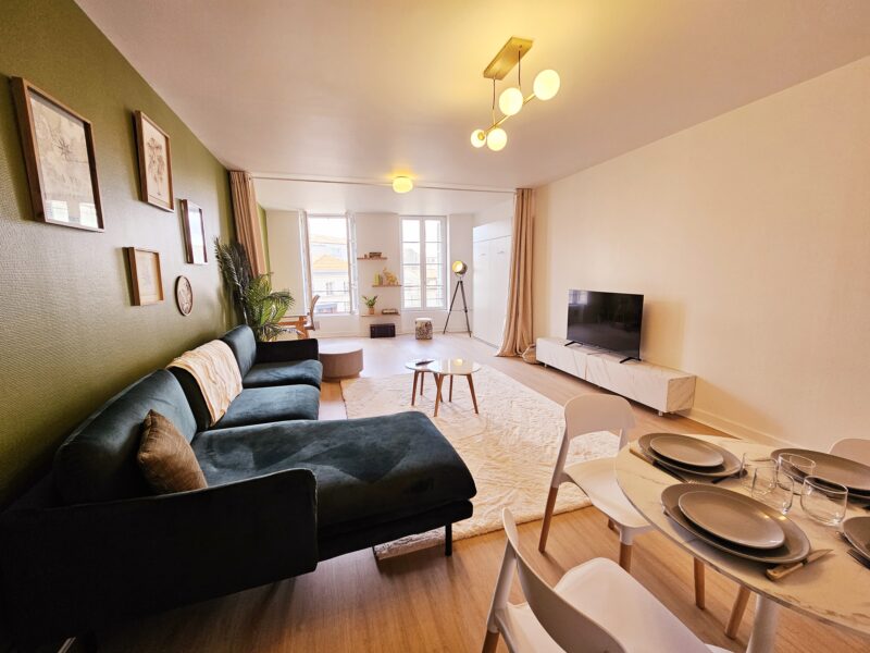Just a stone’s throw from all amenities, entertainment and restaurants, you can stroll along the pedestrianised streets, visit the cathedral (650 m away), the comics museum (1.7 km away), the Cinéma CGR (450 m away) and the Théâtre d’Angoulême scène nationale (280 m away).
