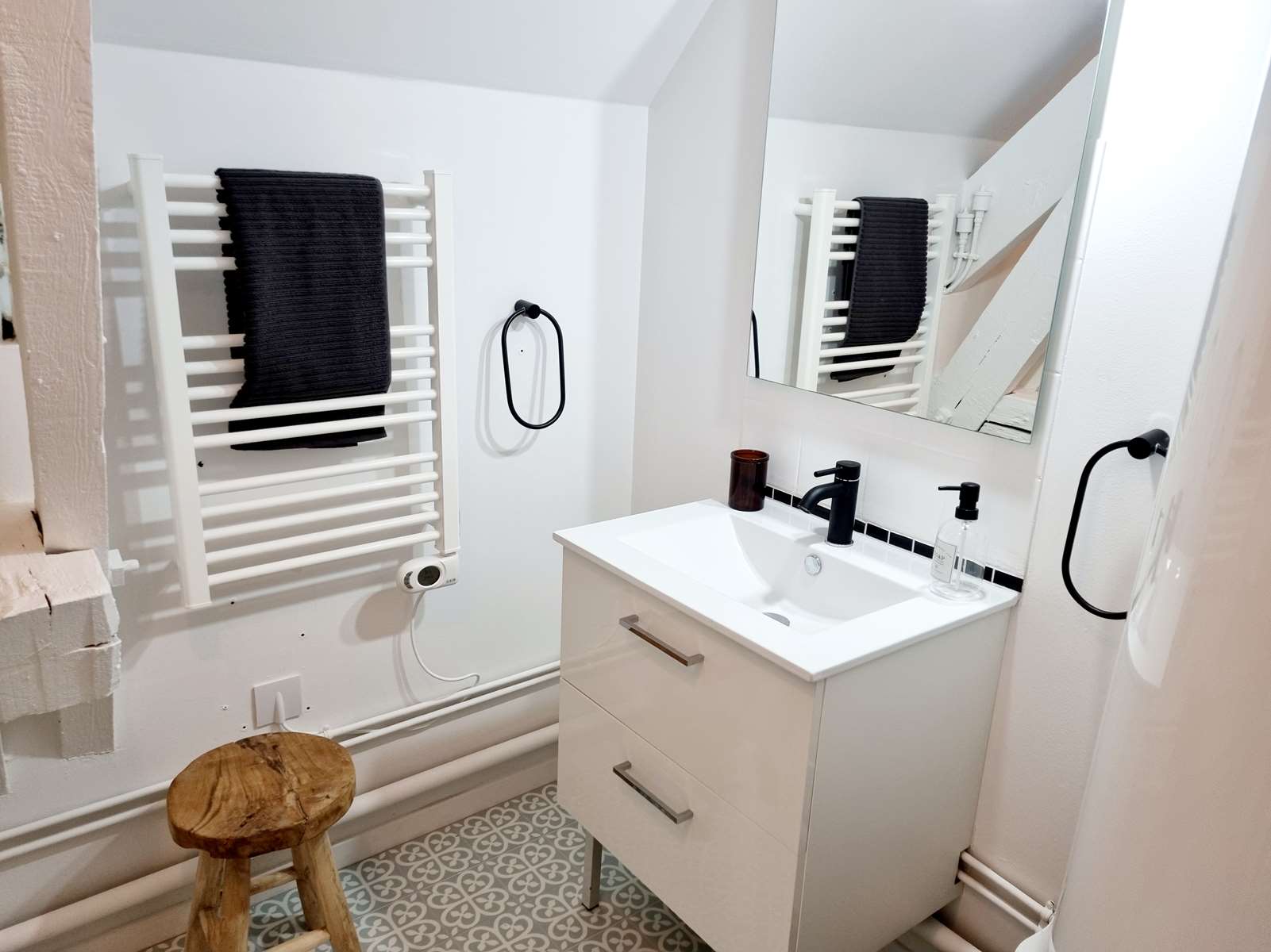 Its fully-equipped kitchen with traditional oven and microwave, Nespresso coffee machine, kettle, toaster and hob is open to the living room. You’ll also be able to prepare some tasty local dishes in the covered market just a stone’s throw away. A washing machine will be available in the building in a room provided for this purpose.