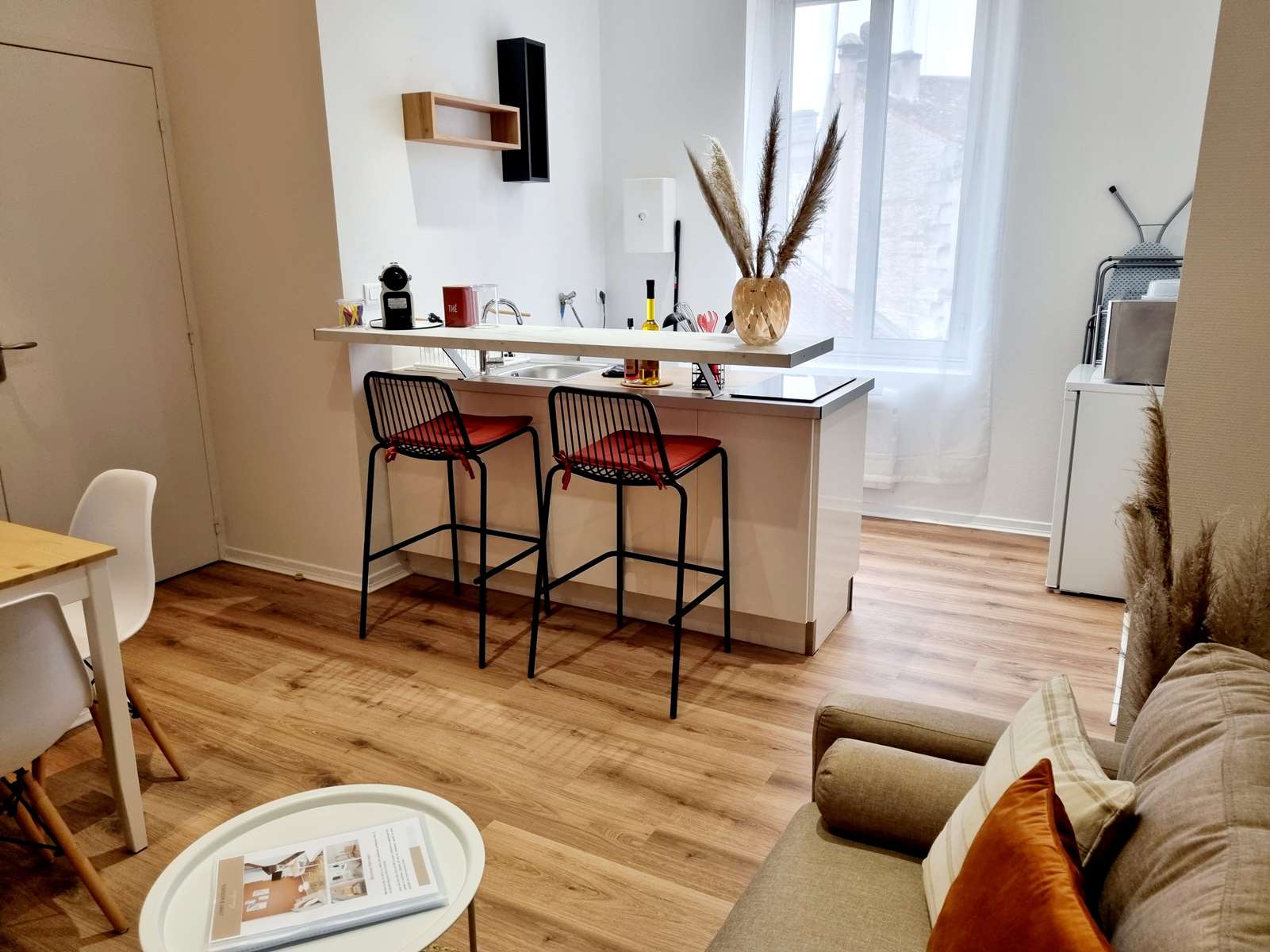 Recently renovated with a contemporary design, this traditional red brick building is ideally located in the heart of Jarnac town centre. From here, you can take full advantage of the local shops, pedestrianised streets and restaurants on foot.