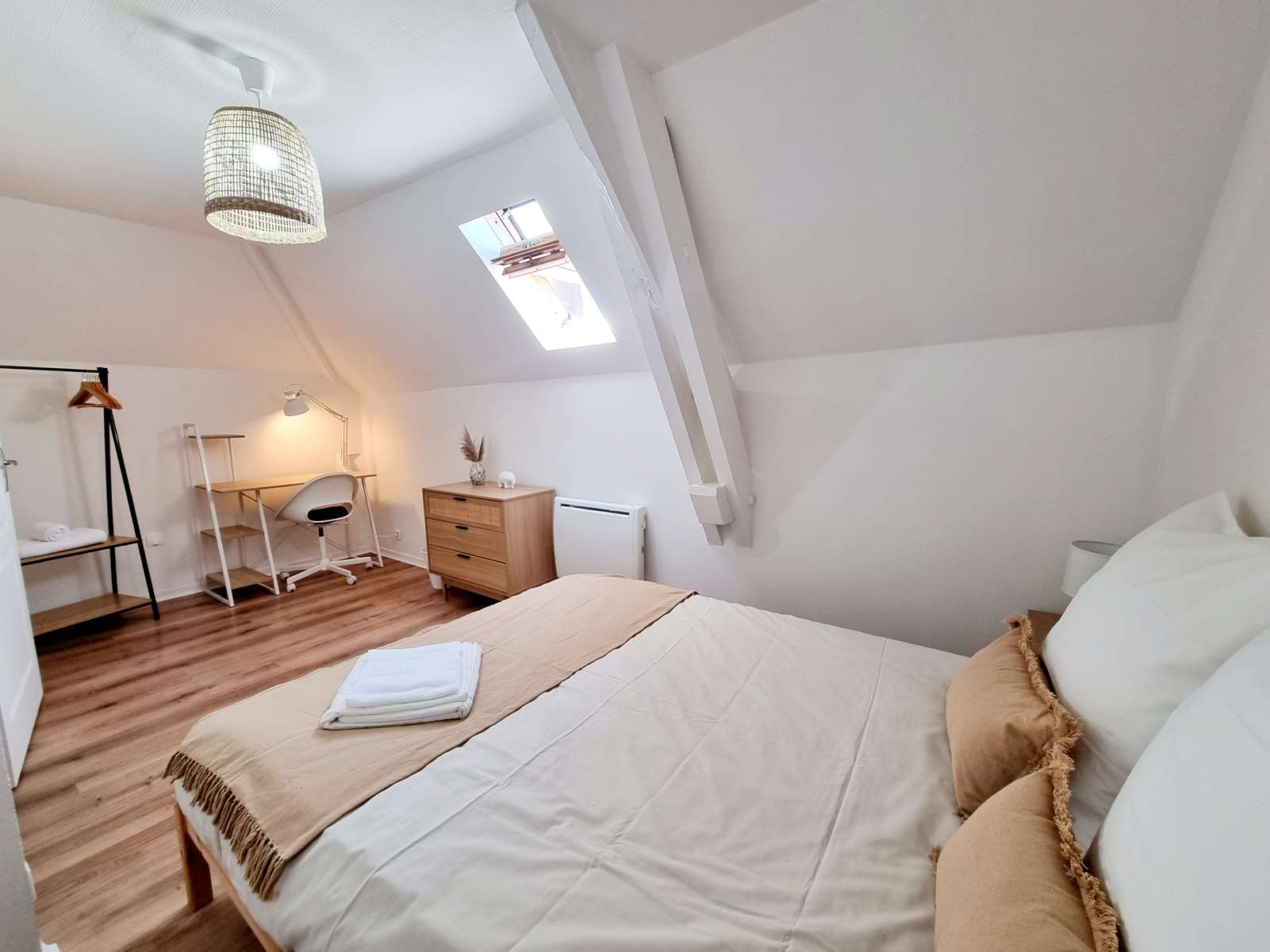 This flat of over 30 m2 in the heart of the city offers you a comfortable bedroom with a 140cm double bed and a chest of drawers with hangers. The functional bathroom has a large shower, washbasin, hairdryer and WC.