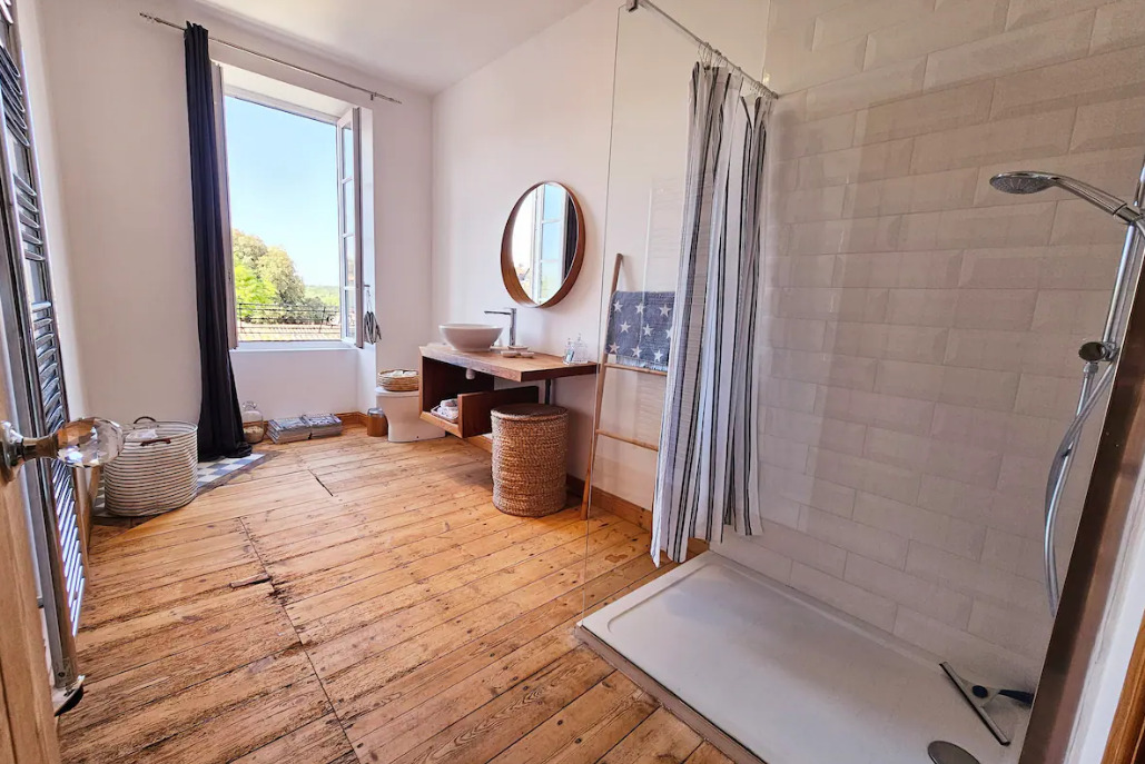 Spacious bathroom with shower and WC
