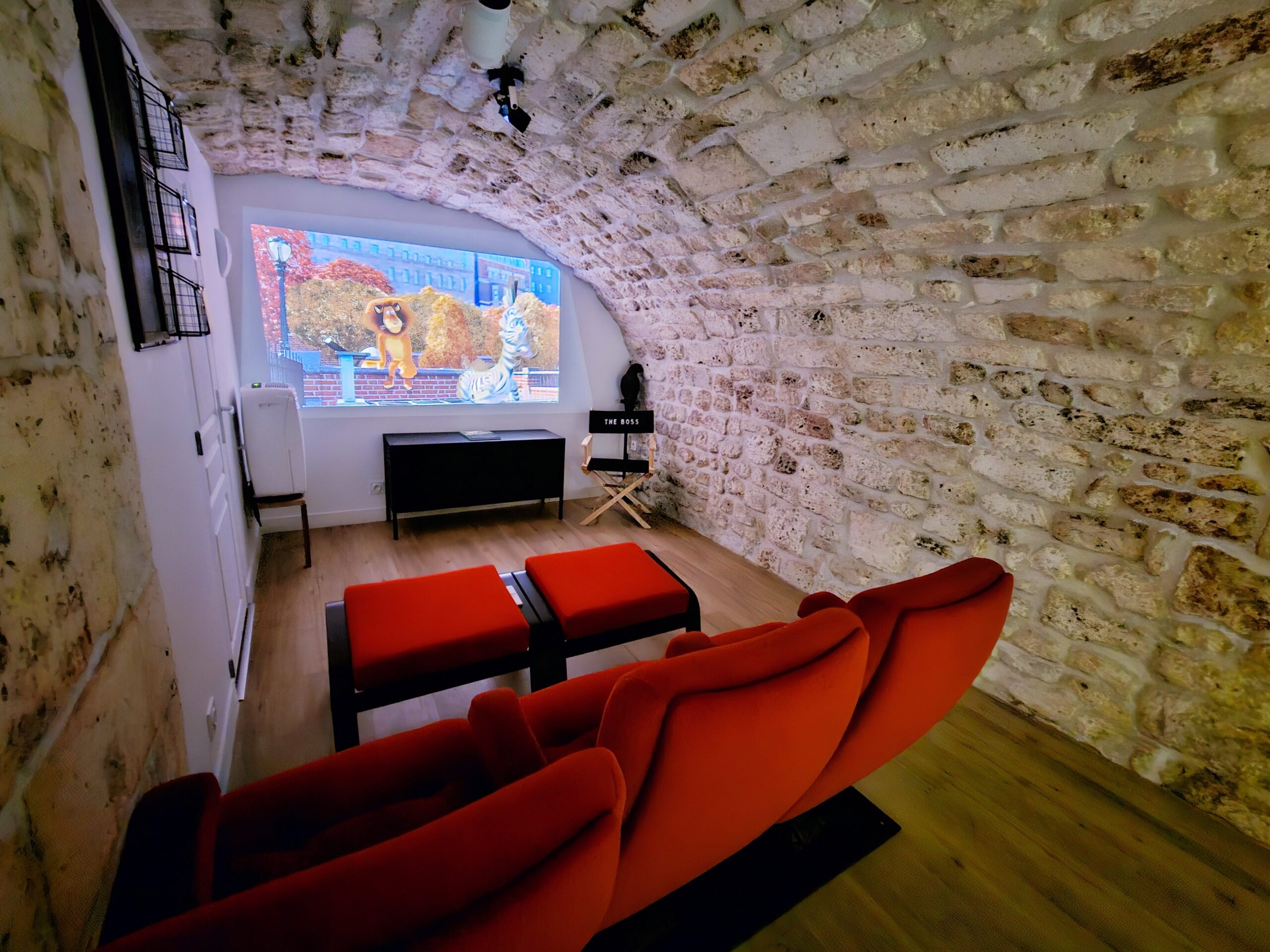 A unique space in a vaulted cellar with table football and a home cinema with video projector for your film evenings!